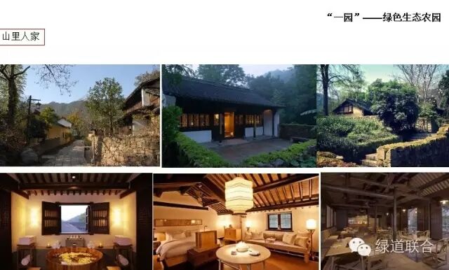 3、山里人家——對現有村莊進行統(tǒng)一規(guī)劃,打造品質鄉(xiāng)村度假,可以進行統(tǒng)一經營,也可讓居民自行經營。