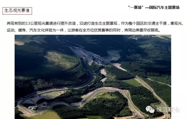 綠道聯合在北京大安山汽車公園的規(guī)劃設計項目,重點打造5個板塊,集汽車賽事活動、汽車主題休閑、汽車服務配套,結合區(qū)域鄉(xiāng)村農業(yè)發(fā)展,將汽車主題活動形成園區(qū)化、產業(yè)化。