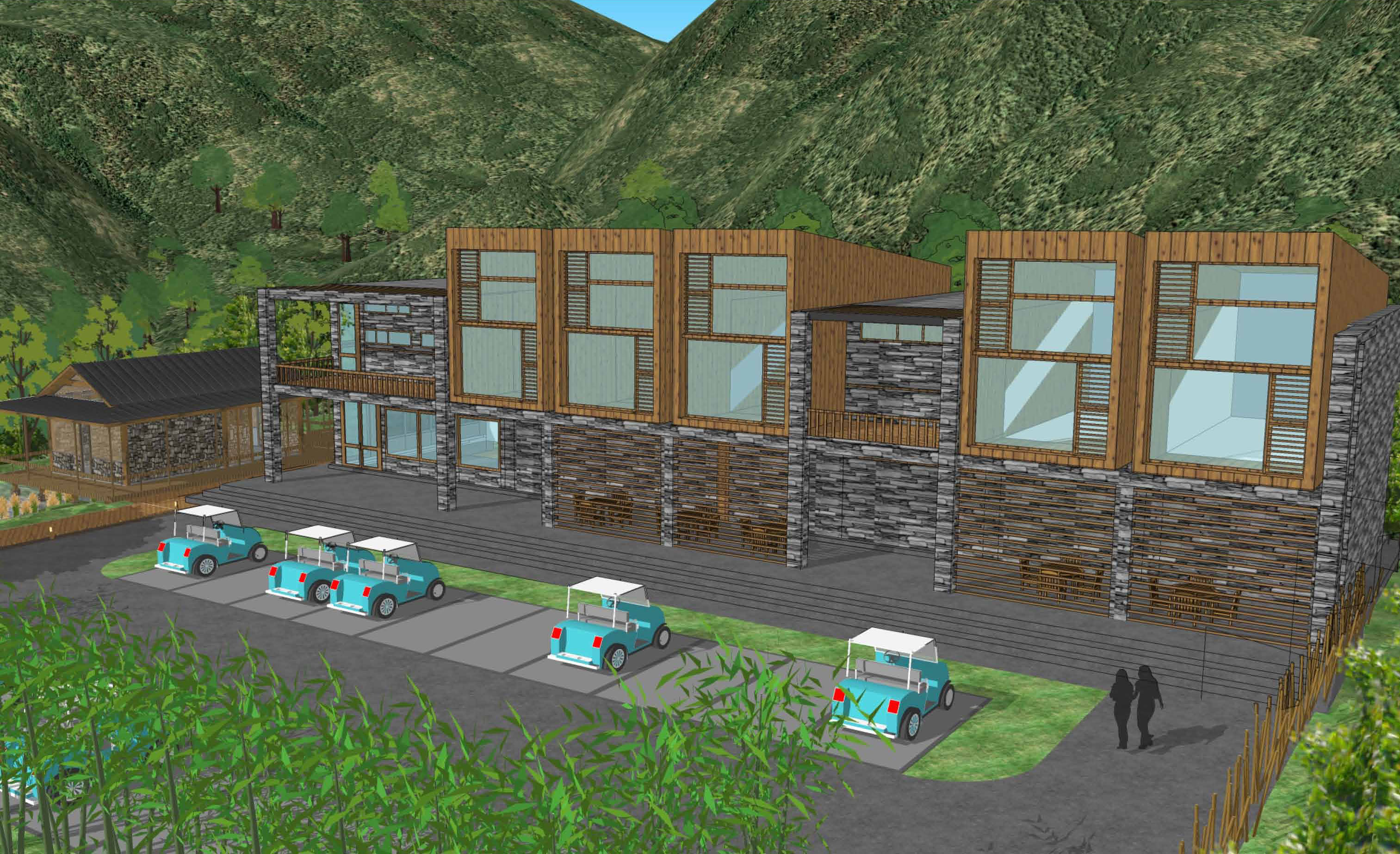 2、使用地域性自然材料。因地制宜,充分利用竹、木、石材等鄉土材料形成獨特的建筑風格。