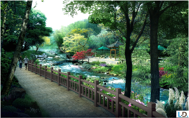 入口服務區:設置游客服務中心、度假酒店、停車場以及相應公共服務設施,打造龍津溪地的門戶形象。