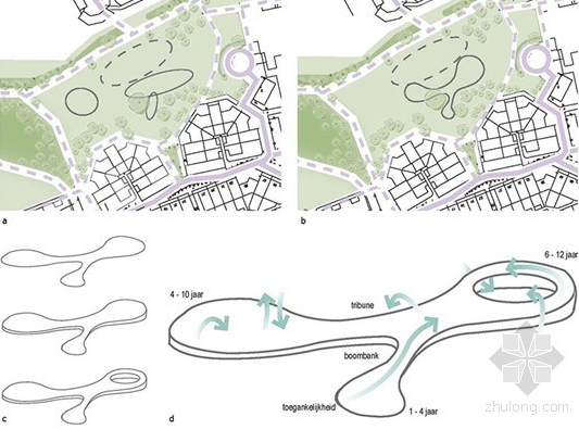 這是由Carve設計的海牙市Billie Holiday(比利假日)游樂場。位于海牙安靜的郊區(qū)Loosduinen。這座公園在翻新之前,幾乎被人遺忘。然而,隨著修復之后,這里變成了一個極具吸引力的公園。在翻新伊始,社區(qū)委員會舉辦了公眾參與的活動,充分了解了當?shù)鼐用竦囊庠浮R虼耍伦闱驁龊妥孕熊嚶窂绞桩斊錄_。通過重新安置新設備,而達到周圍空間重組的目的。